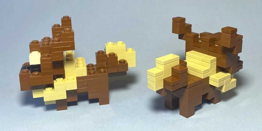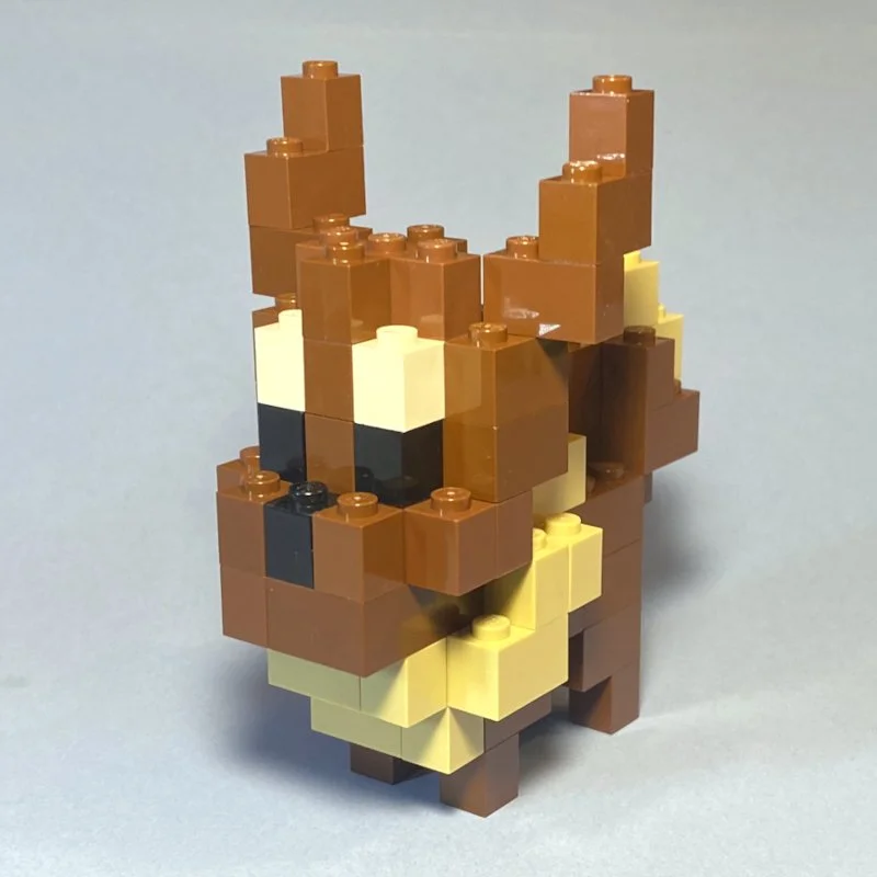 With the recent release of the official Lego Pokemon sets, including a large Eevee, I decided to re-create the Nanoblock Mininano version using Lego bricks.