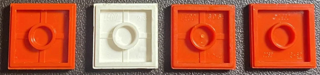 While looking at the BrickLink inventory and pulling parts it took a bit to tell if a part was “vintage” or not. For example, I discovered I have four variants of the standard 2x2 tile when looking at the bottom.